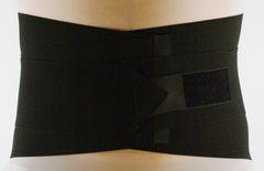 9" Elastic lumbar support with a pocket to accommodate a moldable insert. Inside pocket panel is available with neoprene for extra warmth or elastic. Overlapping elastic side pulls provide compression and support. 12" Elastic model also available.