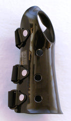 Constructed of rigid polyethylene laminated with soft closed cell foam lining and contact closure. Contoured design formed to allow full thumb and finger motion while immobilizing the wrist. Radiolucent and fully ventilated.