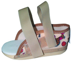 Clown print canvas upper with hook and loop closure and a skid resistant sole.