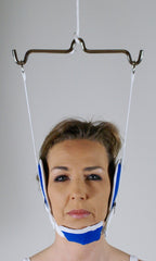 Repro-type head halter is designed to provide occipital pull while in the horizontal position. Padded chin piece is designed to minimize the pressure, and is adjustable. May be used with or without spreader bar.